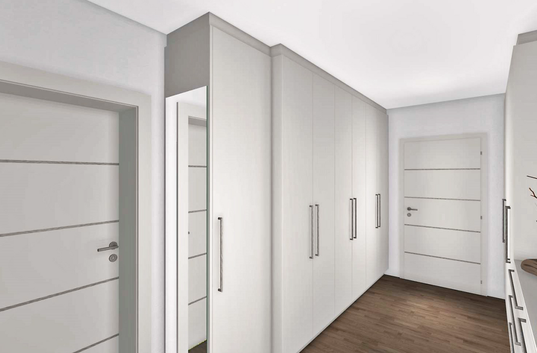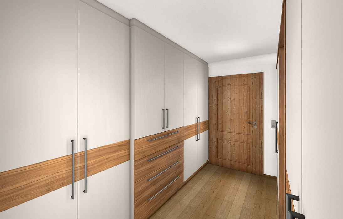 Offene Schrankwände oder geschlossene? – Auch das ist eine häufig gestellte Frage. Soll der Fernseher im Schrank „versenkt“ werden können? Wie sieht´s mit einem Kleiderlift aus? Wie mit Beleuchtung und dem geräuschlosen Soft-Close-Schließsystem? Und wie wäre es mit einem mobilen Standspiegel anstelle fix installierter, für mehr Flexibilität?