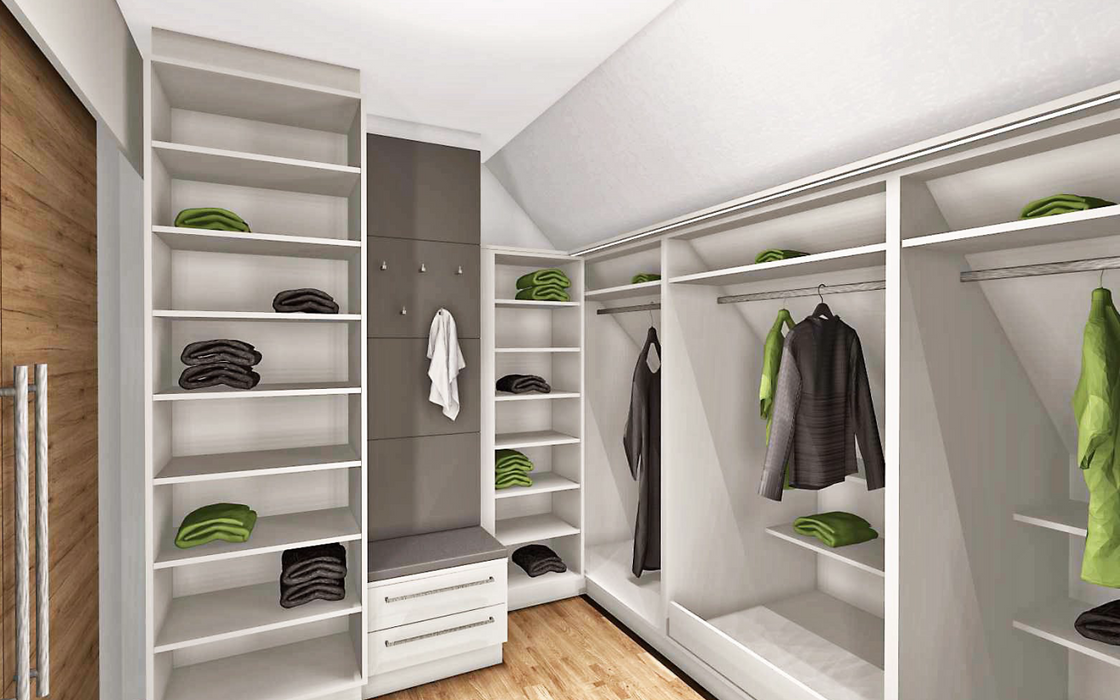 Ein SCHRANKRAUM! Längst ist er nicht bloß der Traum jeder Frau, die auf ihre Garderobe hält. Schrankenloser und dabei begehbarer Stauraum vereinfacht nun mal die tägliche Suche nach dem besten Outfit maßgeblich. Für jedermann. Wir helfen gerne dabei.